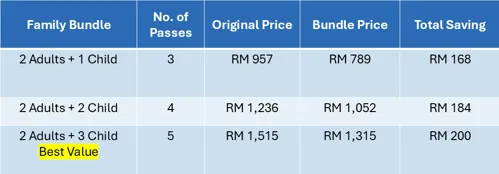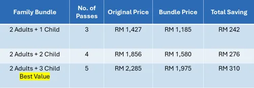 Enjoy greater savings with our Annual Pass Bundle Deal — simply purchase a minimum of 3 Annual Passes to unlock exclusive discounts. The more you buy, the more you save!